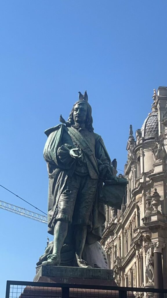 • Overcoat: The long overcoat in the statue aligns with the cloaks worn by men of Teniers’ standing in the 17th century, suggesting a degree of historical accuracy.